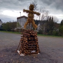 Es handelt sich in der Regel um möglichst hoch aufgetürmte Holzstöße aus Baum- und Strauchschnitt. Mancherorts befindet sich zuoberst des Stapels eine Hexenpuppe aus Stroh. So wie auch hier zu sehen.